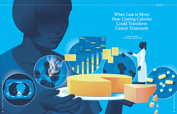 The illustrations are for the article “When Less is More: How Cutting Calories Could Transform Cancer Treatment” on Research at Thomas Jefferson University no.06. Early animal research shows reducing calories enhances radiation therapy.
